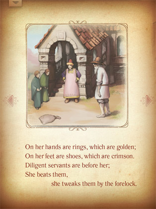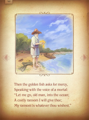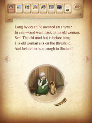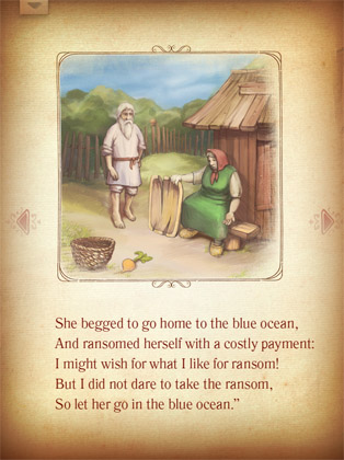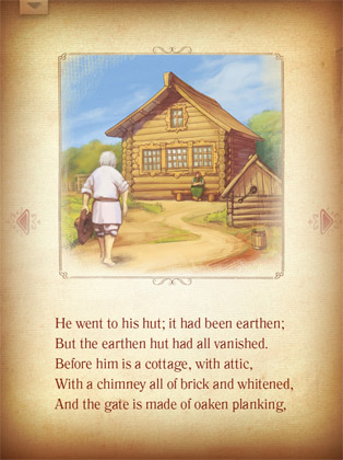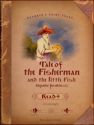 And now we can read with our children the works by Pushkin, the greatest Russian righter and poet. Our interactive book rich with wonderful illustrations of great talent. All of the pictures return to alive when we touch them. All of the Fairy characters are moving and children can play.